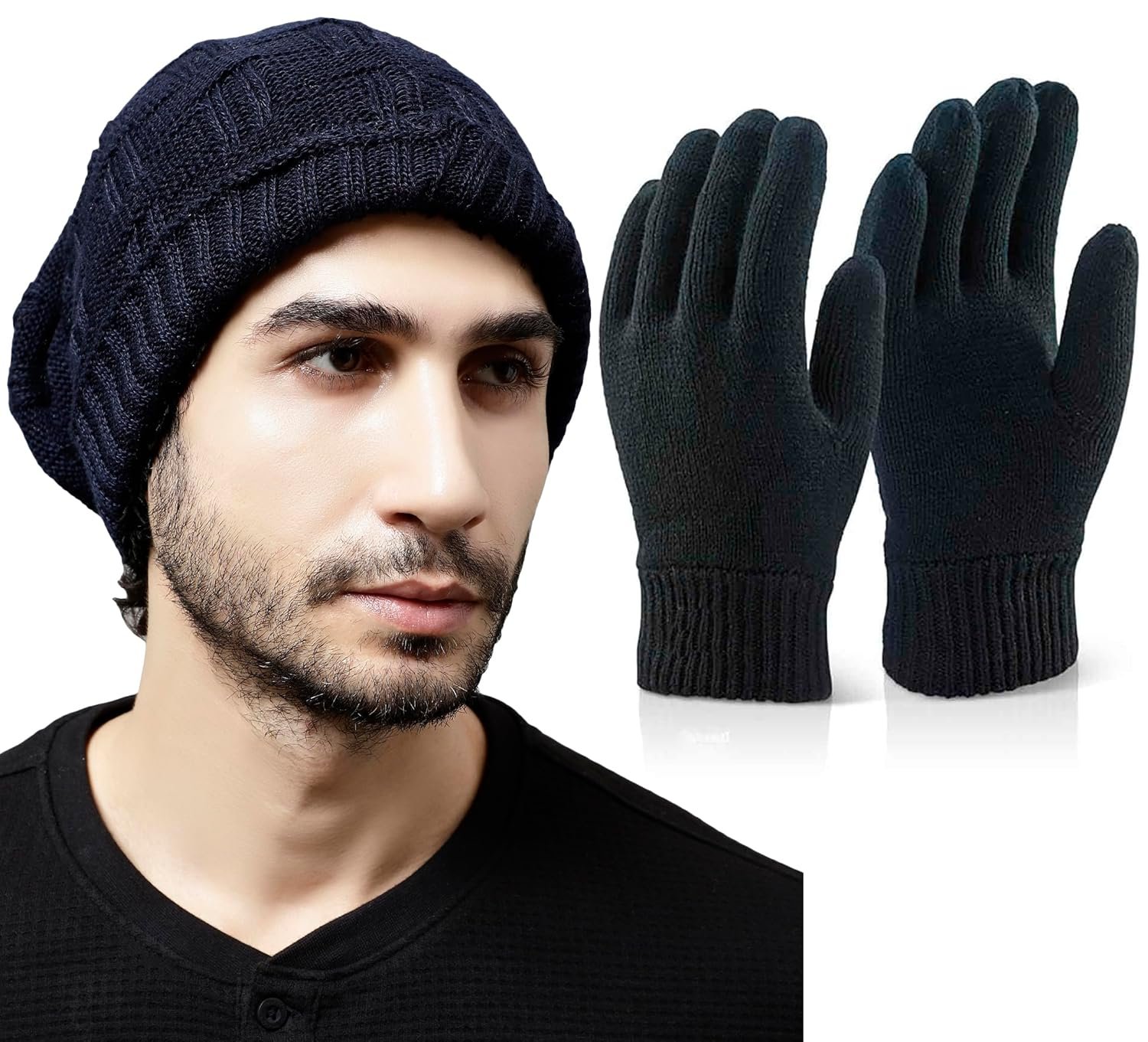 Weavers Villa Set of Winter Beanie Cap Warm Knit Hat Thick Fleece Lined Winter Hat and Gloves for Men Women Dual layers design. Super thick and chunky acrylic knit construction keeps you warm. The soft fleece inner lining has better heat retention, enjoy the maximum warmth. Delicate sewing thread, provide the added durability. This winter cap is perfect for daily wearing including indoors and outdoors activities, for example: sleeping, walking your dog, cycling, skiing, snowboarding, running, camping, traveling, fishing, hiking, motorcycling and so on. Folding light weight snow ski caps could cover your ears to provide extra warm on your ears and your cheek. Simple but fashionable design keeps you looking good in cold weather.