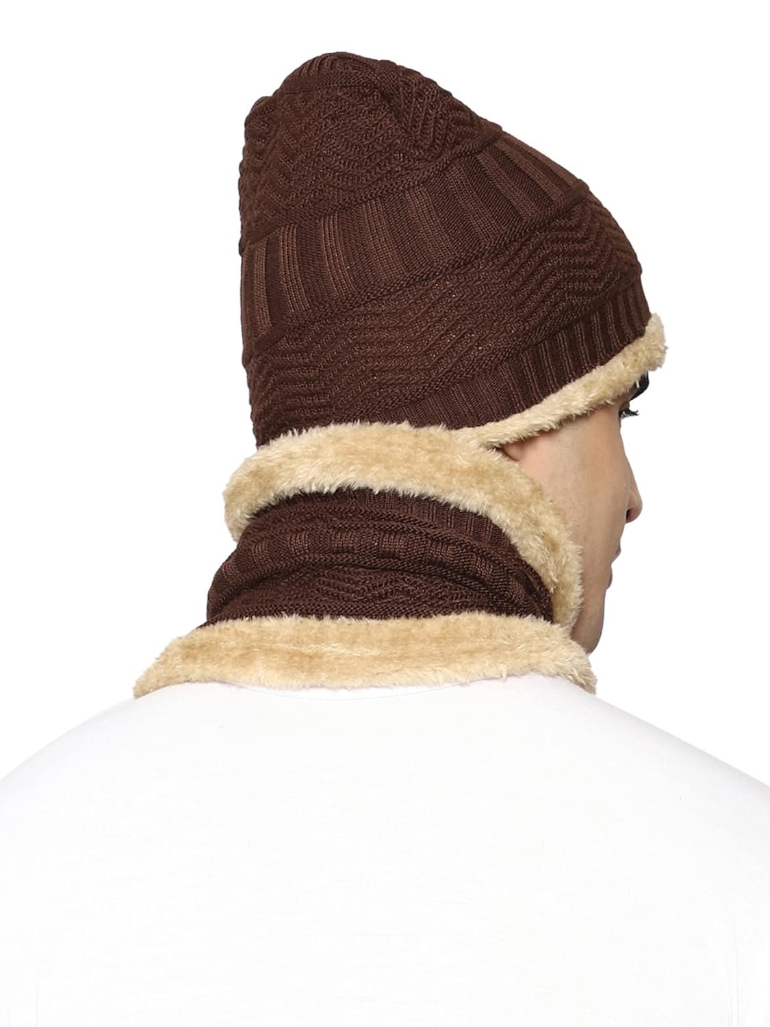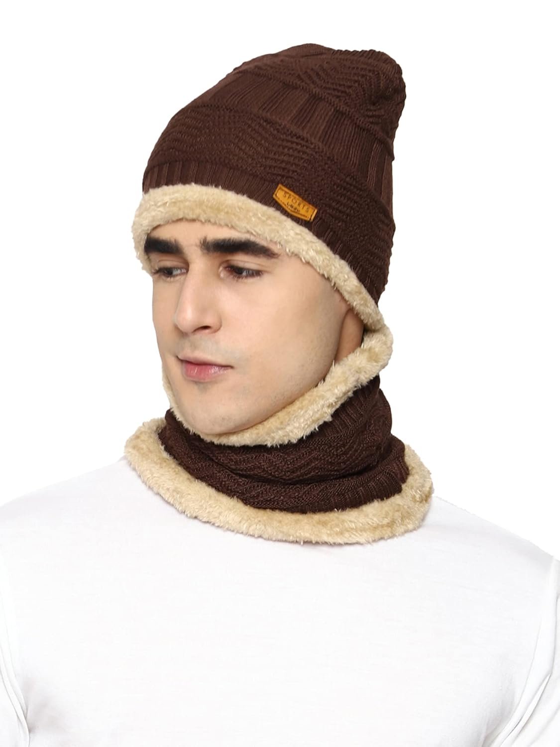 Weavers Villa Unisex’s Set (Cap+Warmer-Coffee_Brown, Free Size