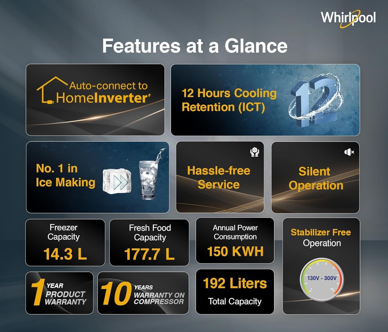 Whirlpool 192 L 4 Star Icemagic Powercool Direct-Cool Single Door Refrigerator (215 IMPC PRM 4S SAPPHIRE MULIA-Z)