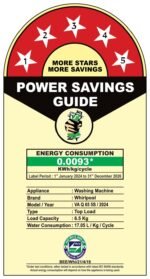 Energy star rating 5 Star: Best in class efficiency, Annual energy consumption: 0.0104 KWh/kg/cycle