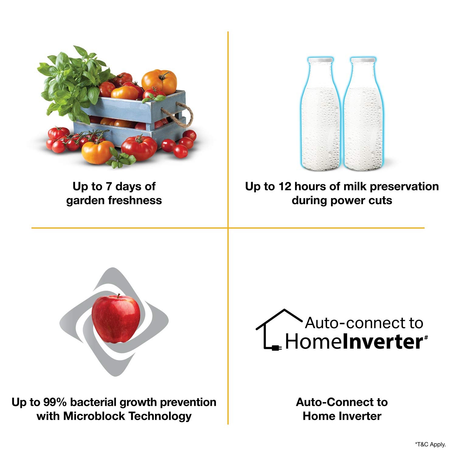 In the event of a power outage, it automatically connects to the home inverter#, thus delivering consistent cooling and maintaining long-lasting freshness.