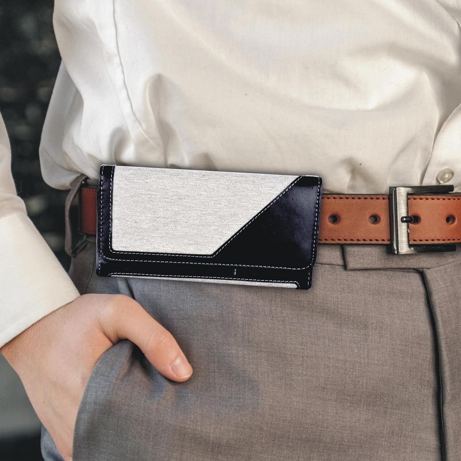 WHITBULL Dual Tone Leather Magnetic Holster Belt Pouch for Realme GT 6 / V60 / Narzo N63 / Narzo N61 / C61 / GT7 Pro Racing
