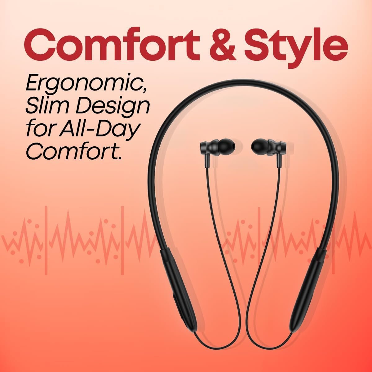 Ergonomics with a lightweight sturdy built (just 26gms) | Wireless Earphones with mic & Bluetooth 5.3 for seamless 10-meter connectivity, Quick pairing, Dual-device paring & broad compatibility.