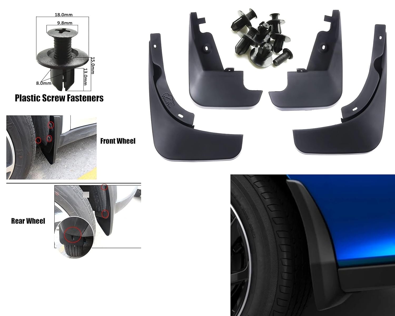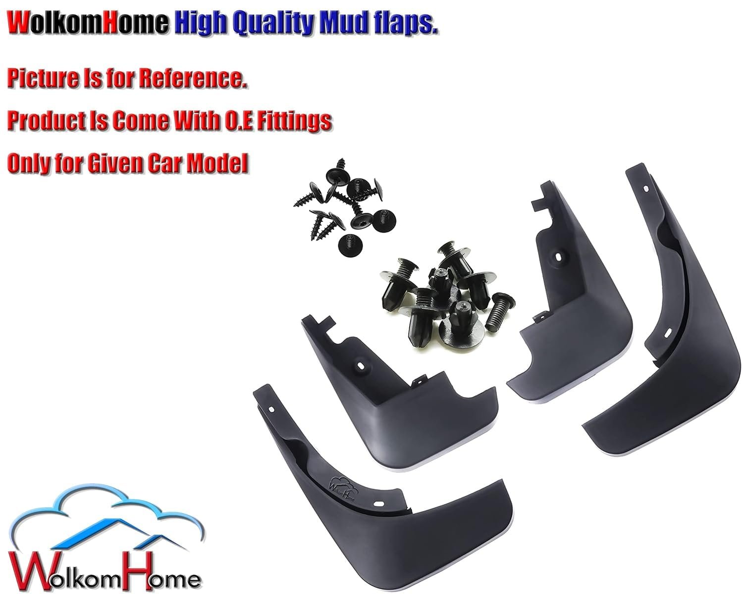 WolkomHome A Quality Splash Guard Mud Flaps Replacement Perfect Fit in Your Car and Protects Car from Unwanted Mud Splash. Special Design and Directly Fit Without Any Modifications Quick and Easy Installation; OE Replacement moulded Mud Flaps; Pre-Drilled (Direct-Fit) Splash Guards Fenders Accessories Protect Your Vehicle from Mud, Dirt, Ice, Gravel and Road Salt. Reduce the Number of Cars Washing and Paint.