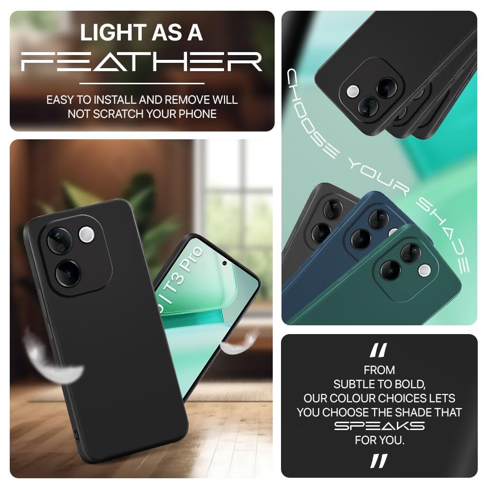 WOW IMAGINE Back Cover for iQOO Z9s Pro 5G | Vivo T3 Pro 5G | Ultra Slim Soft Rubberised Case | Inner Velvet Fabric Lining | Matte Silicone Flexible Mobile Case | Camera Protection – Black