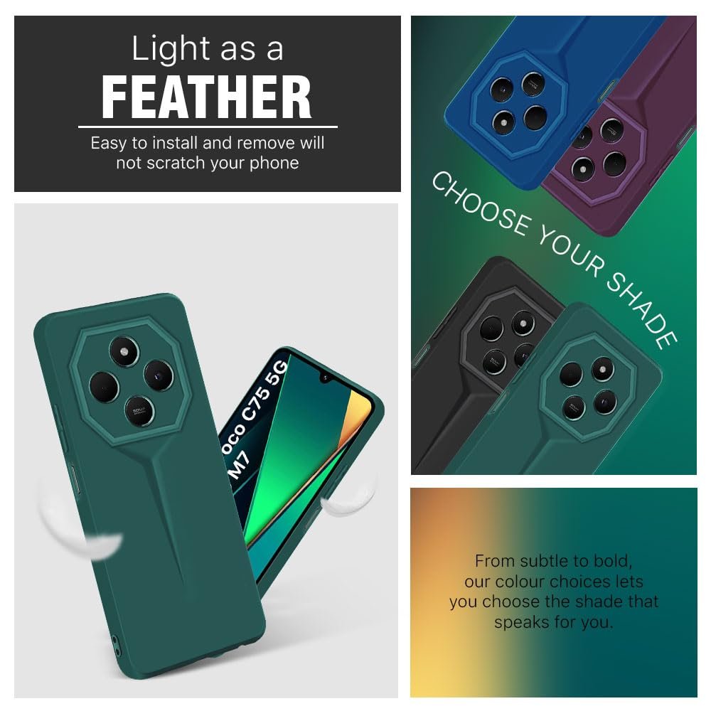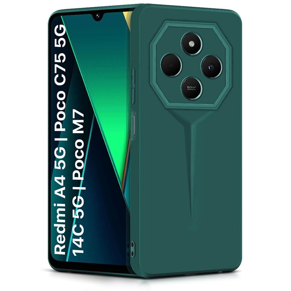 WOW IMAGINE Back Cover for Redmi A4 5G | Poco C75 5G | 14C 5G | Poco M7 | Blade Series Ultra Thin Case with Lightweight Design | Camera Protection | Soft Matte Silicone Flexible Mobile Case – Green
