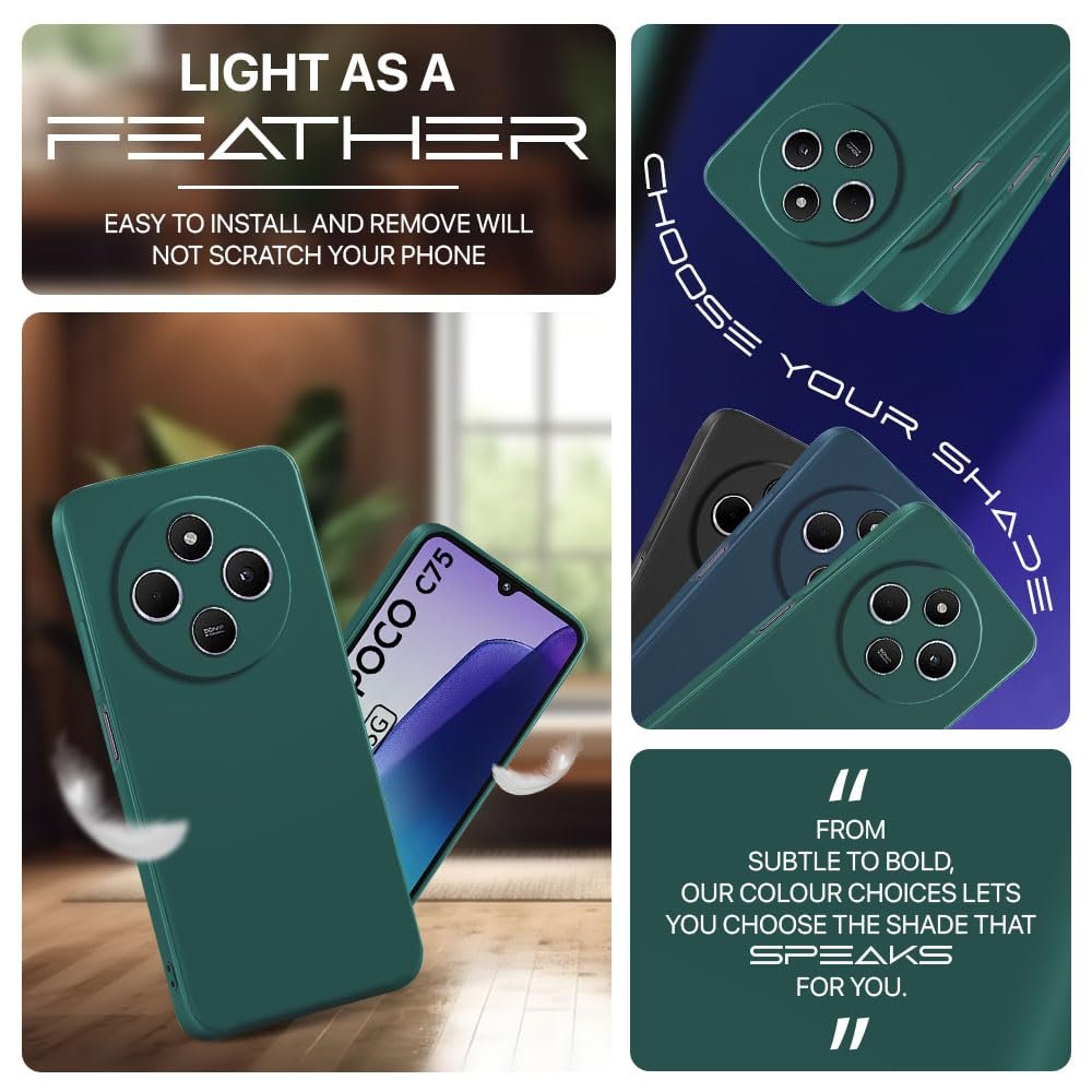 WOW IMAGINE Back Cover for Redmi A4 5G | Poco C75 5G | 14C 5G | Poco M7 | Ultra Slim Soft Rubberised Case | Inner Velvet Fabric Lining | Matte Silicone Flexible Mobile Case | Camera Protection – Green