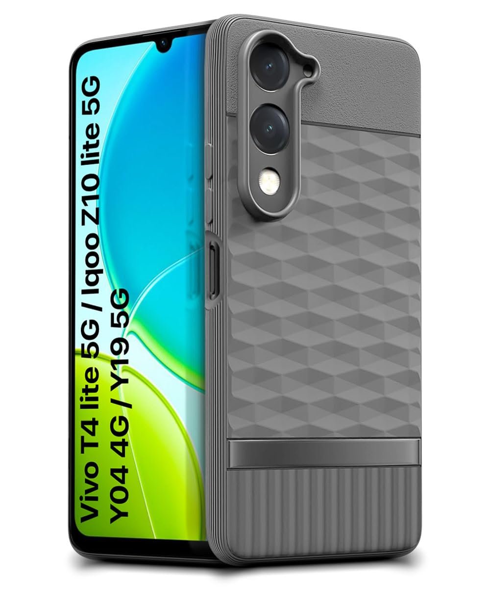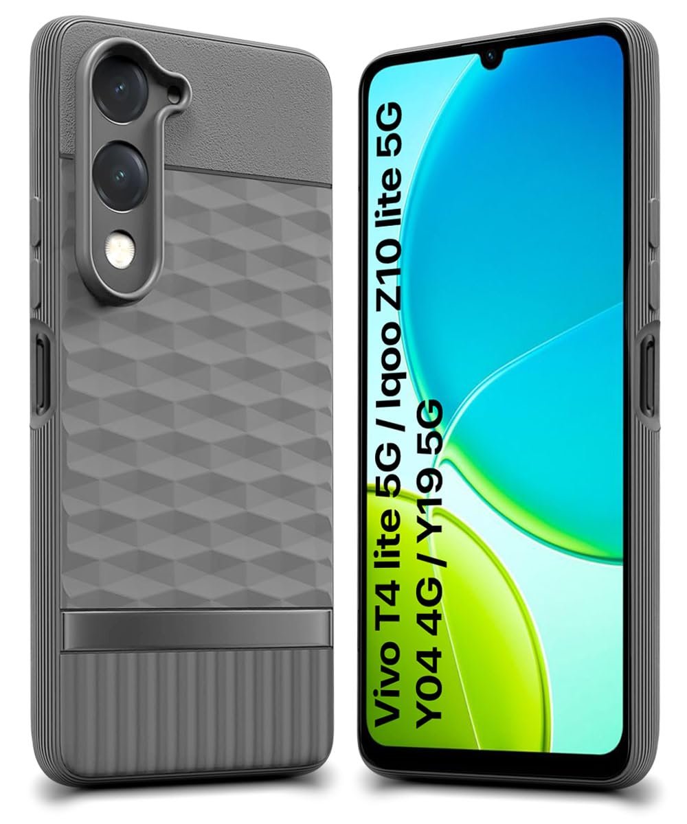 WOW IMAGINE Back Cover for Vivo T4 lite 5G | iQOO Z10 lite 5G | Y04 4G | Y19 5G | Y19e with Hexa Cube Design | Ultra Slim Soft Case | Inner Velvet Fabric | Matte Silicone Flexible Mobile Case – Grey