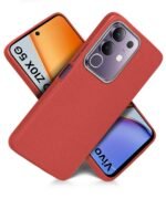 WOW IMAGINE Leather Fabric Soft TPU Back Cover for Vivo T4X 5G | iQOO Z10X 5G (Crimson Red)