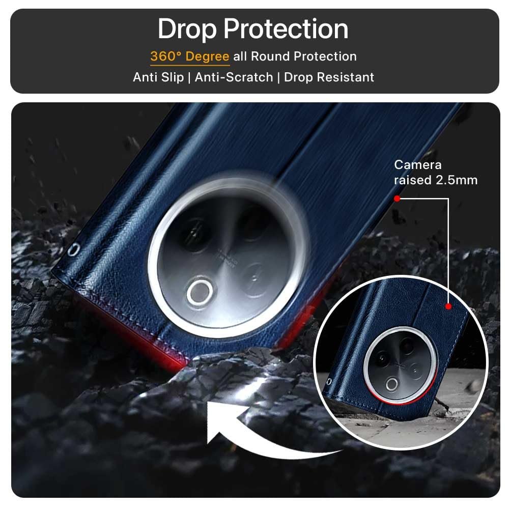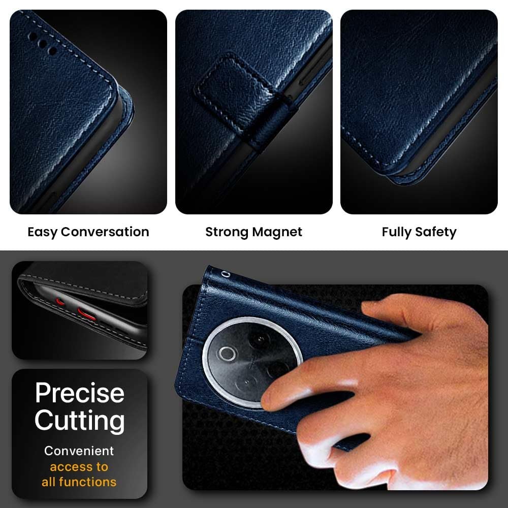 WOW IMAGINE Shock Proof Flip Cover Back Case Cover for iQOO Z10 5G | Vivo T4 5G (Flexible | Leather Finish | Card Pockets Wallet & Stand | Blue)
