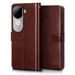 WOW IMAGINE Shock Proof Flip Cover Back Case Cover for iQOO Z9s 5G | Vivo V40e 5G (Flexible | Leather Finish | Card Pockets Wallet & Stand | Chestnut Brown)