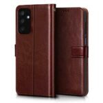 Amazon Brand – Solimo Shock Proof Flip Cover Back Case Cover for Samsung Galaxy M05 (Flexible | Leather Finish | Card Pockets Wallet & Stand | Chestnut Brown