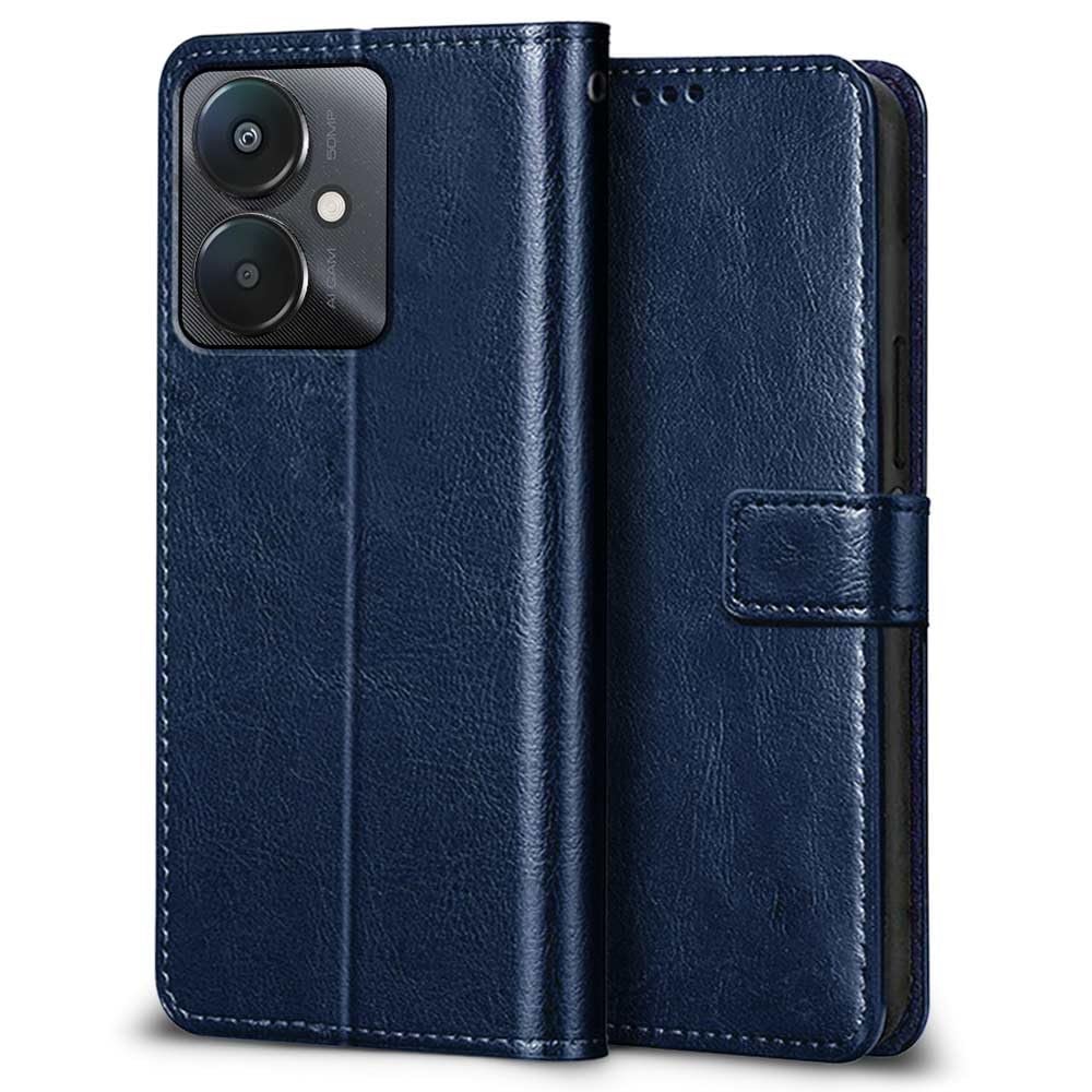 WOW IMAGINE Shock Proof Flip Cover Back Case Cover for Xiaomi Mi Redmi 13C 5G | Redmi 13C 4G | Poco M6 5G | Poco C65 (Flexible | Leather Finish | Card Pockets Wallet & Stand | Blue)
