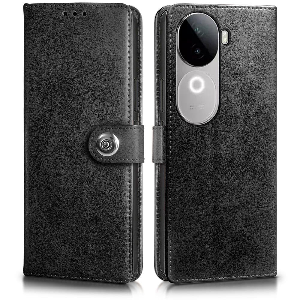 WOW IMAGINE Shock Proof Flip Cover Back Case for iQOO Z9s 5G | Vivo V40e 5G (Magnetic Button Flip Case | Wallet Pockets & Stand | Leather Finish | Haze Black)