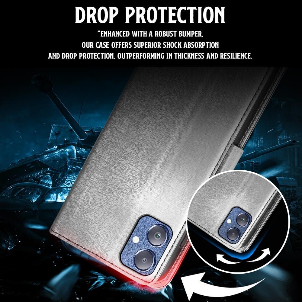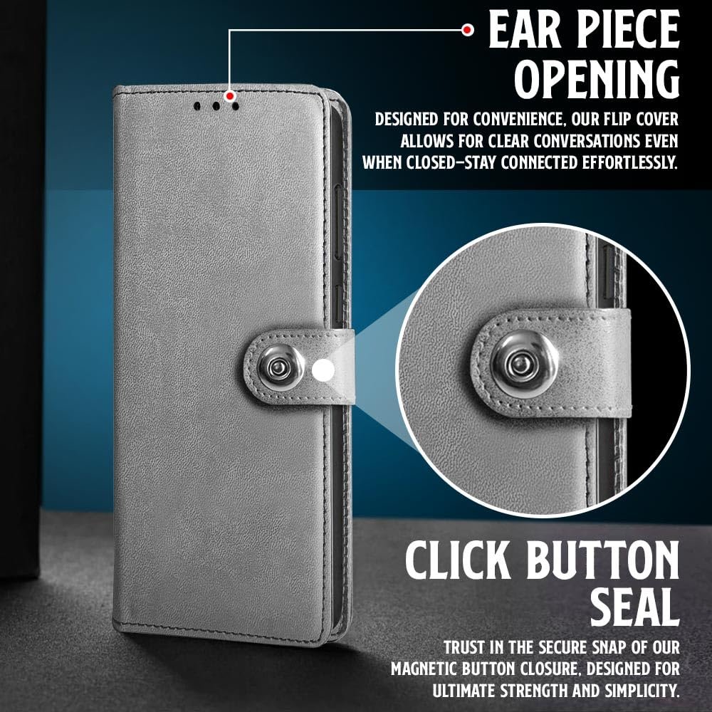 WOW IMAGINE Shock Proof Flip Cover Back Case for Samsung Galaxy F05 | Galaxy M05 | Galaxy A05 (Magnetic Button Flip Case | Wallet Pockets & Stand | Leather Finish | Stone Grey)