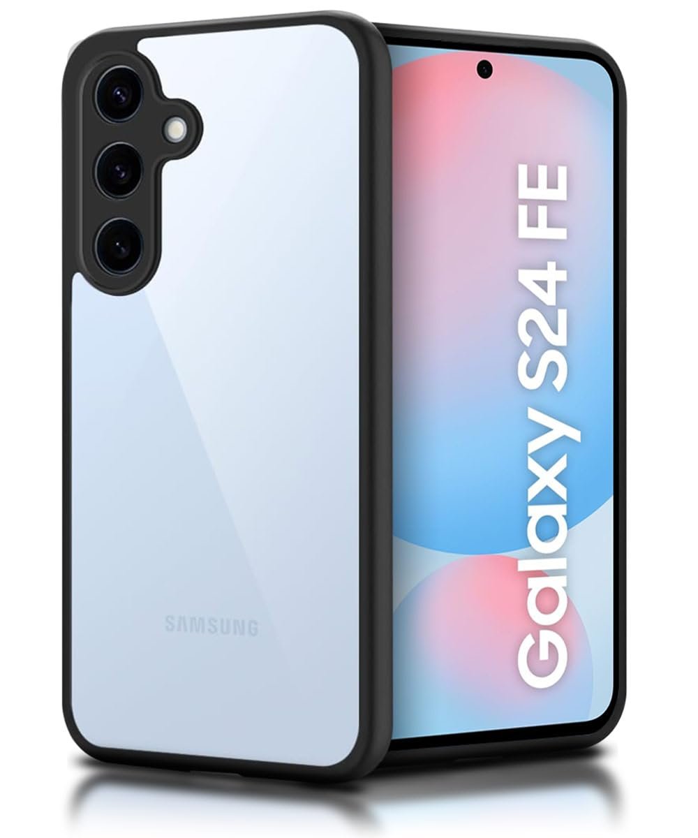 WOW IMAGINE Shockproof Hybrid Back Cover for Samsung Galaxy S24 FE 5G | Hard Slim fit Back Case | PC & TPU | Clear Transparent Case – Black