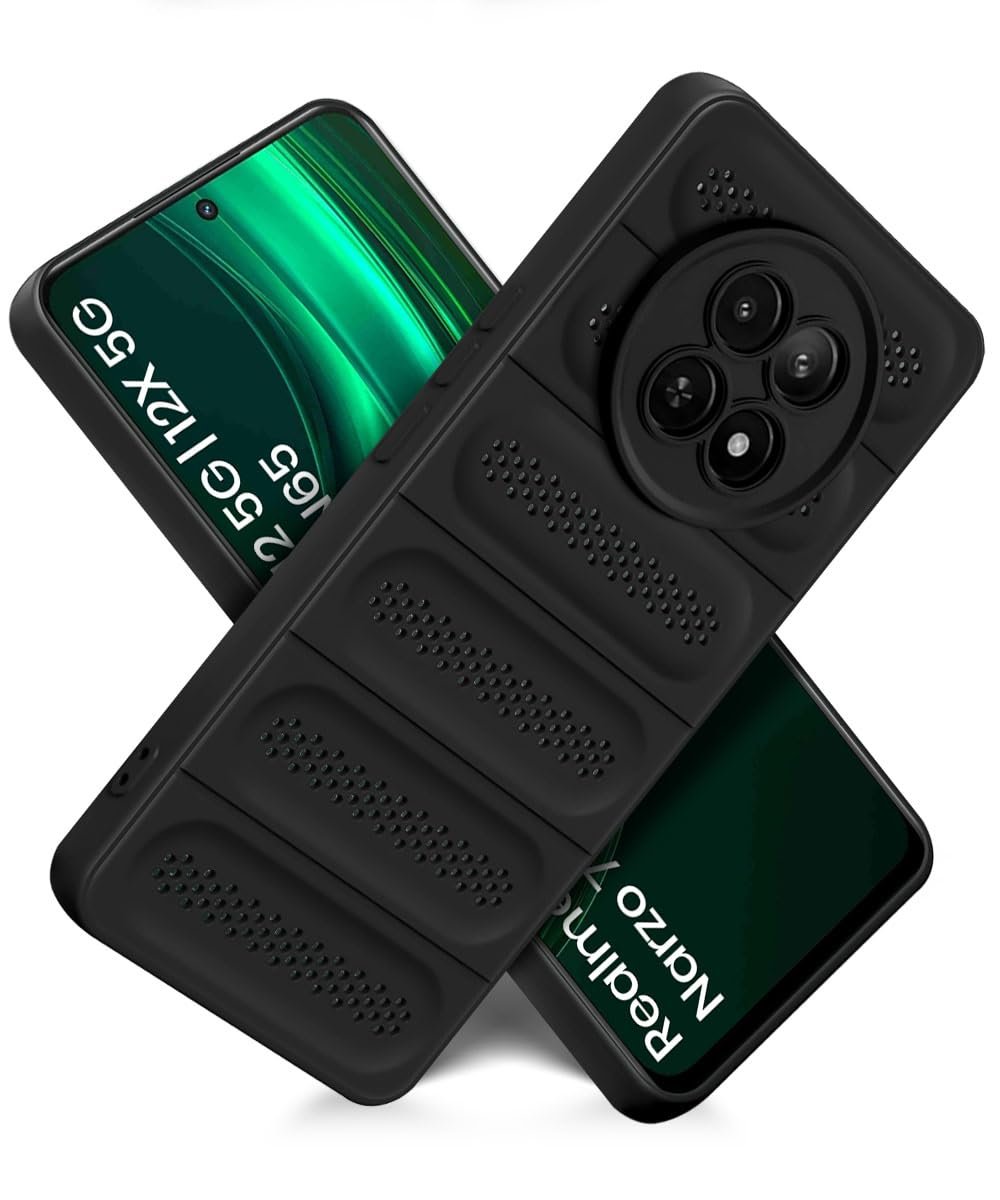 WOW IMAGINE Silicone Back Cover Case for Realme 13 5G | 12 5G | 12X 5G | Narzo 70x 5G | C65 5G | N65 | Heat Dissipation Thin Soft TPU | 360° Camera Protection | Breathable Cooling Holes – Pitch Black
