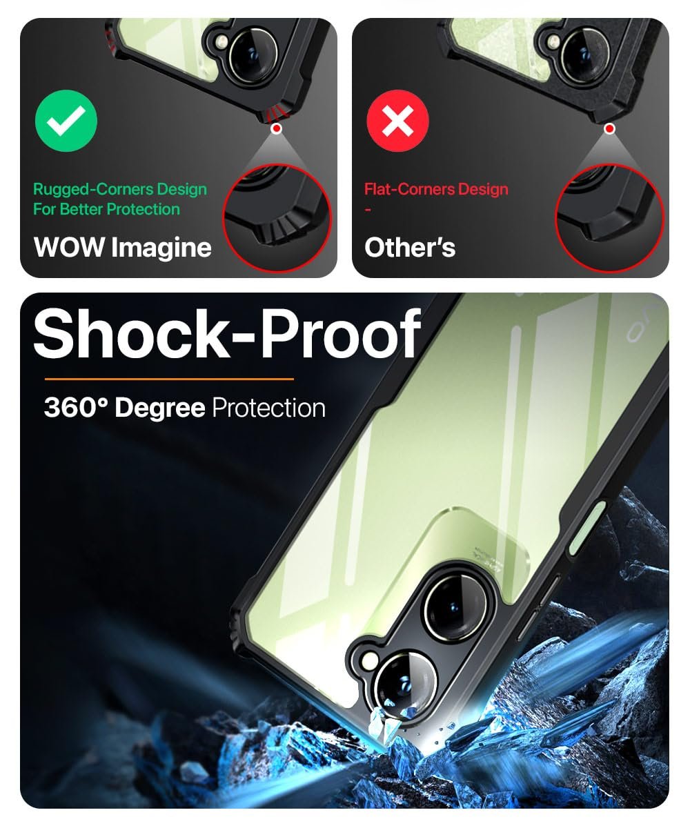 WOW IMAGINE TPU Shock Proof Clear Protective Back Case for Iqoo Z9 Lite 5G|Vivo T3 Lite 5G|Y18|Y18E|Y03-Airedge Technology|360 Degree Camera Protection|Transparent Hybrid Back Case-Black
