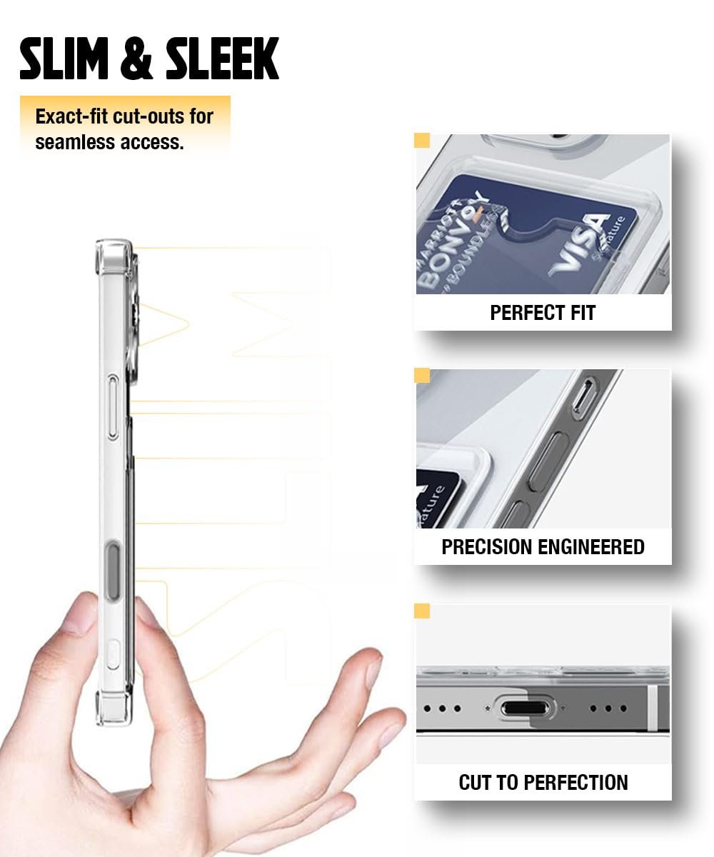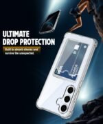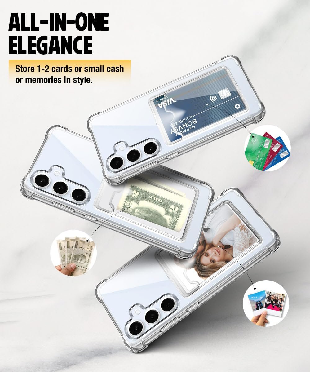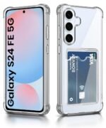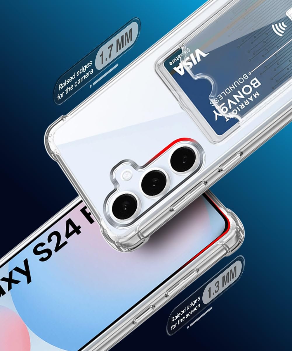 WOW IMAGINE Transparent Back Cover Case for Samsung Galaxy S24 FE 5G | Flexible Built-in Slim Card Pockets Wallet | 360° Camera Protection TPU | Soft Silicone Mobile Cover – Transparent