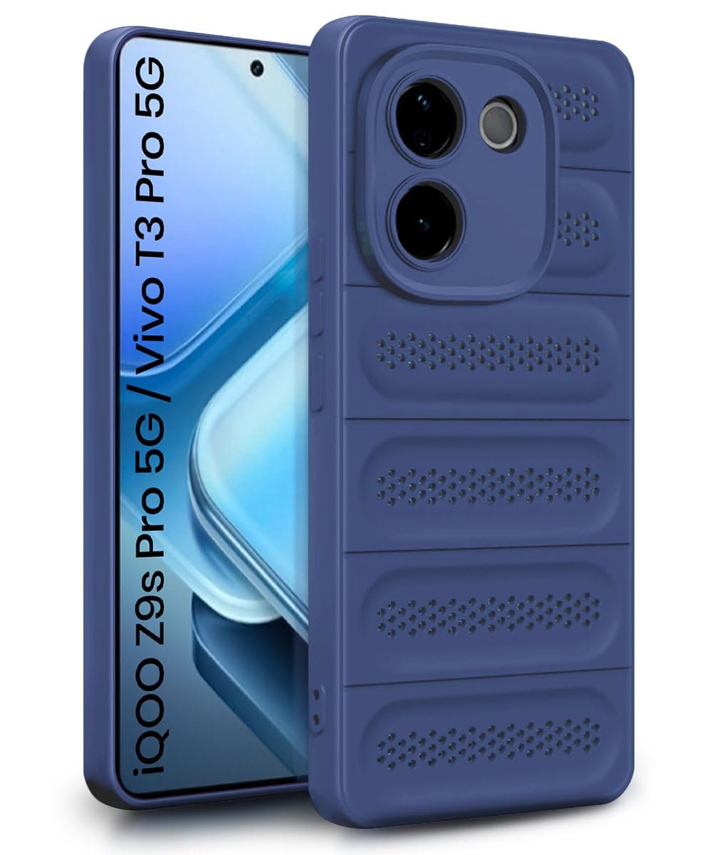 WOW IMAGINE Ultimate Silicone Back Cover Case for iQOO Z9s Pro 5G | Vivo T3 Pro 5G | Heat Dissipation Thin Soft TPU | 360° Camera Protection | Breathable Cooling Holes – Deep Blue