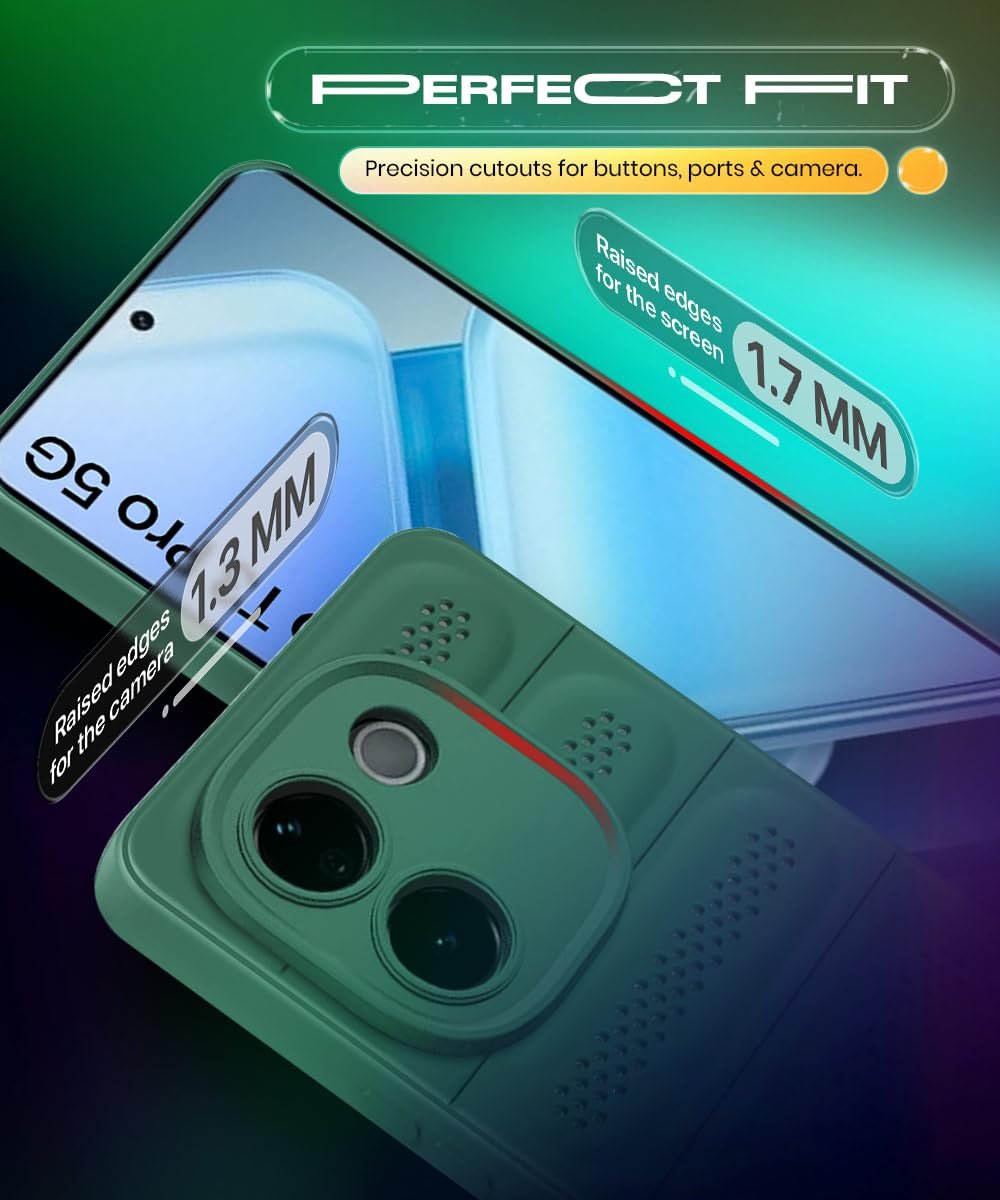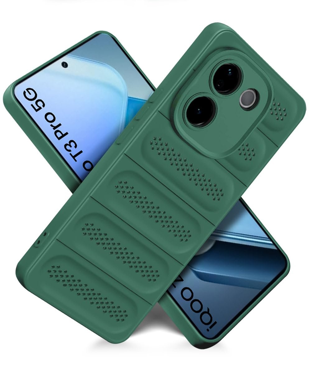 WOW IMAGINE Ultimate Silicone Back Cover Case for iQOO Z9s Pro 5G | Vivo T3 Pro 5G | Heat Dissipation Thin Soft TPU | 360° Camera Protection | Breathable Cooling Holes – Forest Green