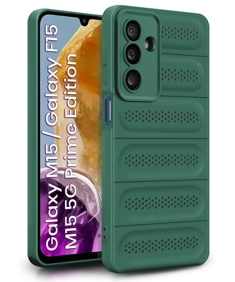 WOW IMAGINE Ultimate Silicone Back Cover Case for Samsung Galaxy M15 5G Prime Edition | M15 5G | F15 5G | Heat Dissipation Soft TPU | 360° Camera Protection | Breathable Cooling Holes – Forest Green