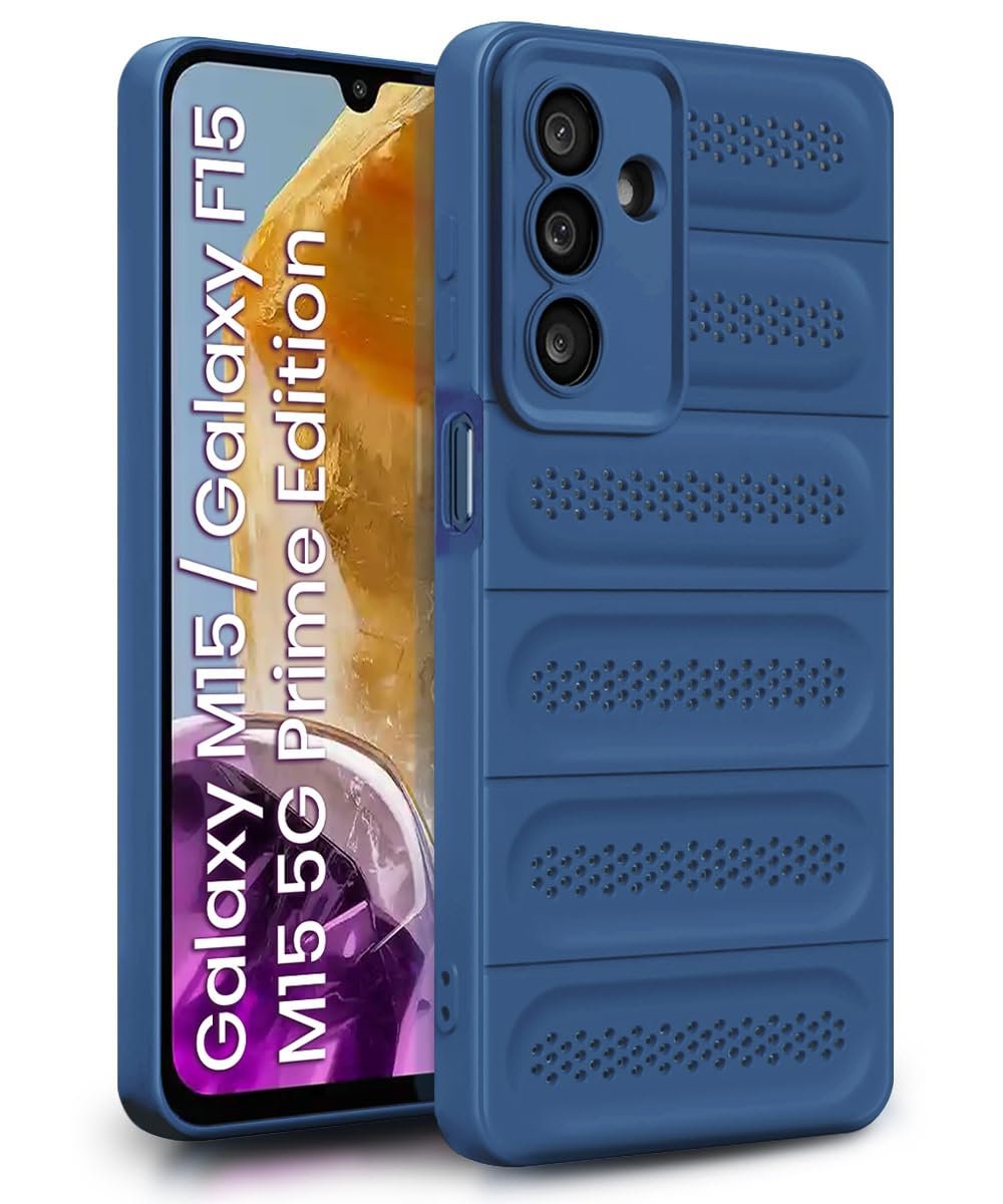 WOW IMAGINE Ultimate Silicone Back Cover Case for Samsung Galaxy M15 5G Prime Edition | M15 5G | F15 5G | Heat Dissipation Thin Soft TPU | 360° Camera Protection | Breathable Cooling Holes – Deep Blue