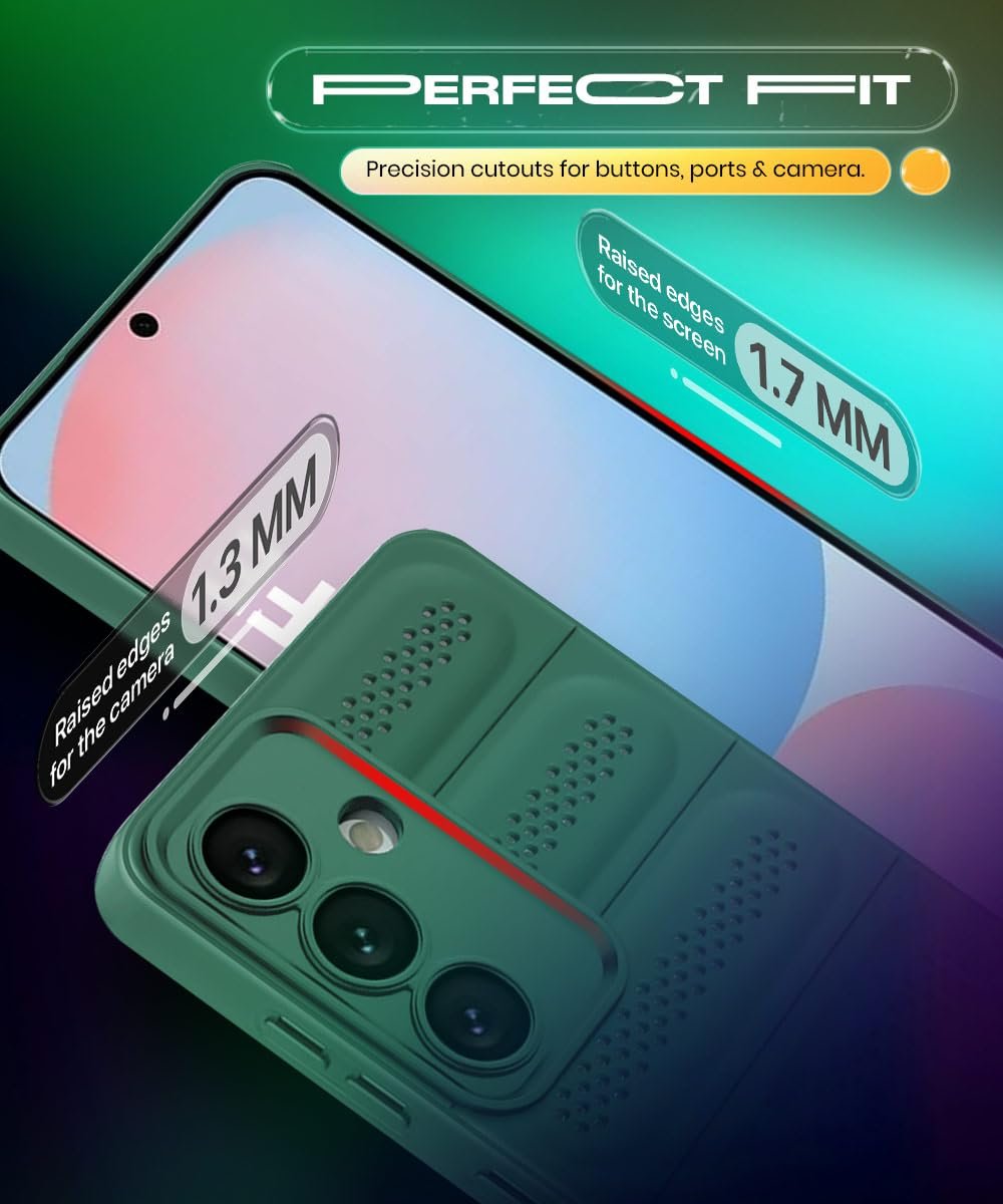 WOW IMAGINE Ultimate Silicone Back Cover Case for Samsung Galaxy S24 FE 5G | Heat Dissipation Thin Soft TPU | 360° Camera Protection | Breathable Cooling Holes – Forest Green