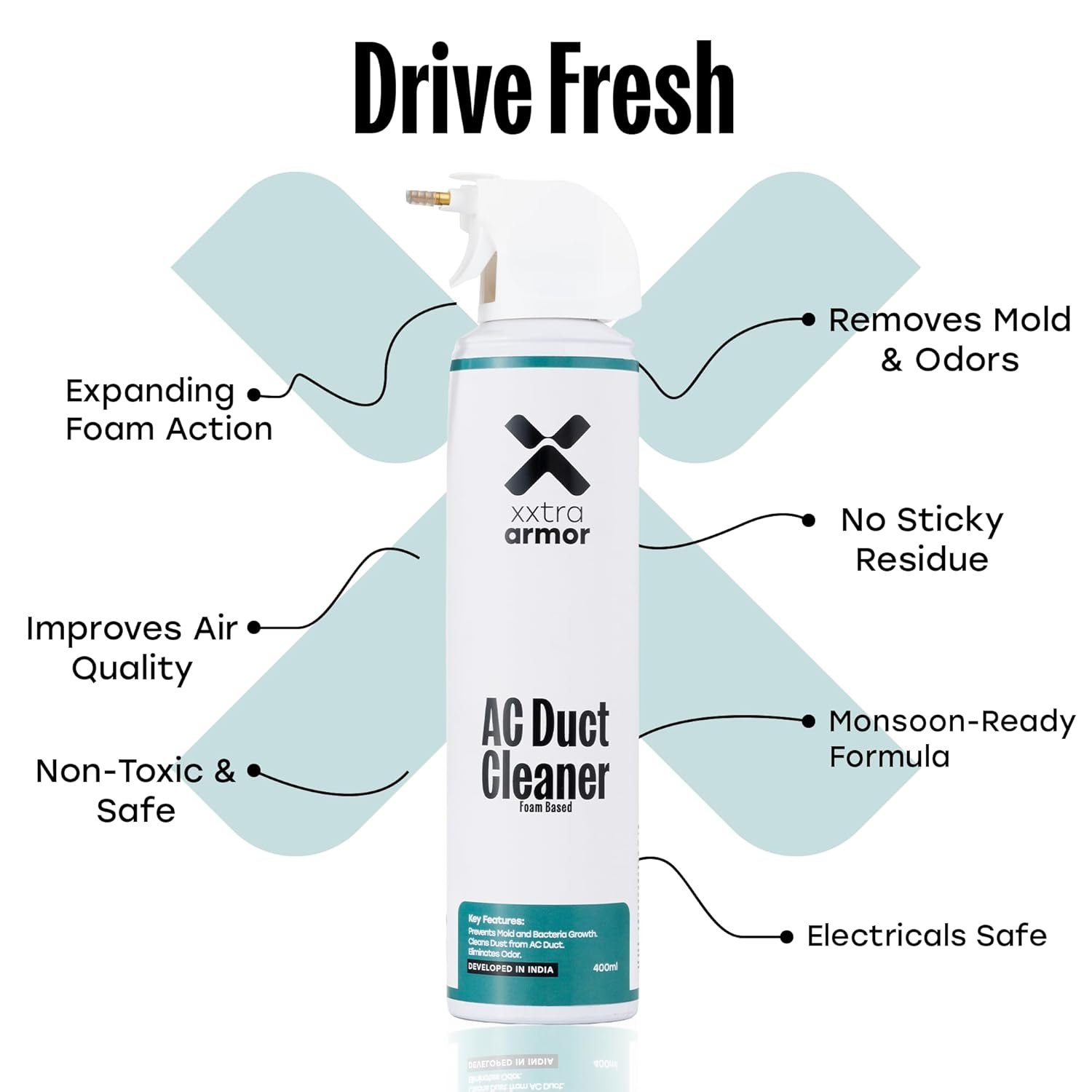 Xxtra Armor AC Vent & Duct Cleaner Foam Spray 400ml | Deep Cleans Car AC Vents to Remove Dust, Mold & Odors | Non-Toxic & Safe on Plastic & Metal | Restores Airflow & Fresh, Clean Cabin Air