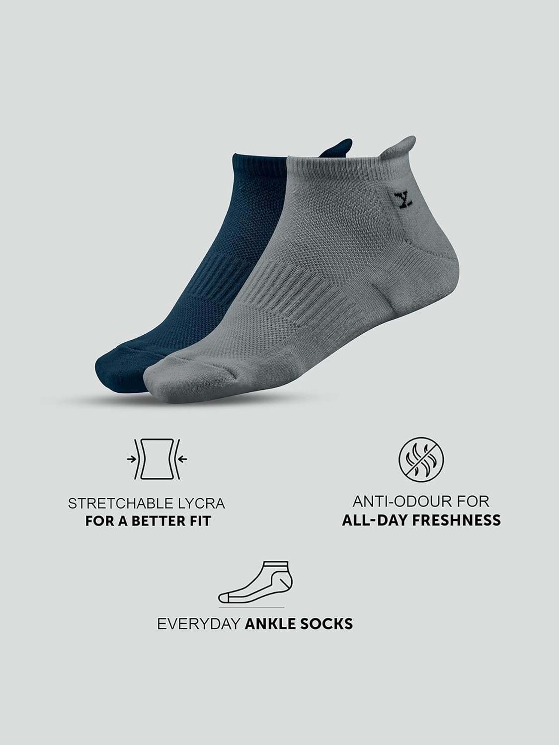 XYXX Men’s Cotton Blend Modern Intellieaze Everyday Ankle-Length Socks With Odour-Free Freshness (Available In Packs of 2, 3 & 4)