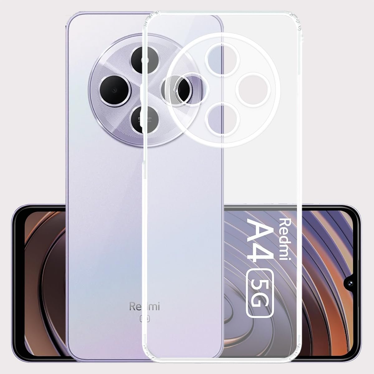 YOFO Silicon Back Cover Case for Mi Redmi A4 / Redmi 14c (5G) / Poco M7 (5G) (Transparent) Camera Protection with Dust Plug