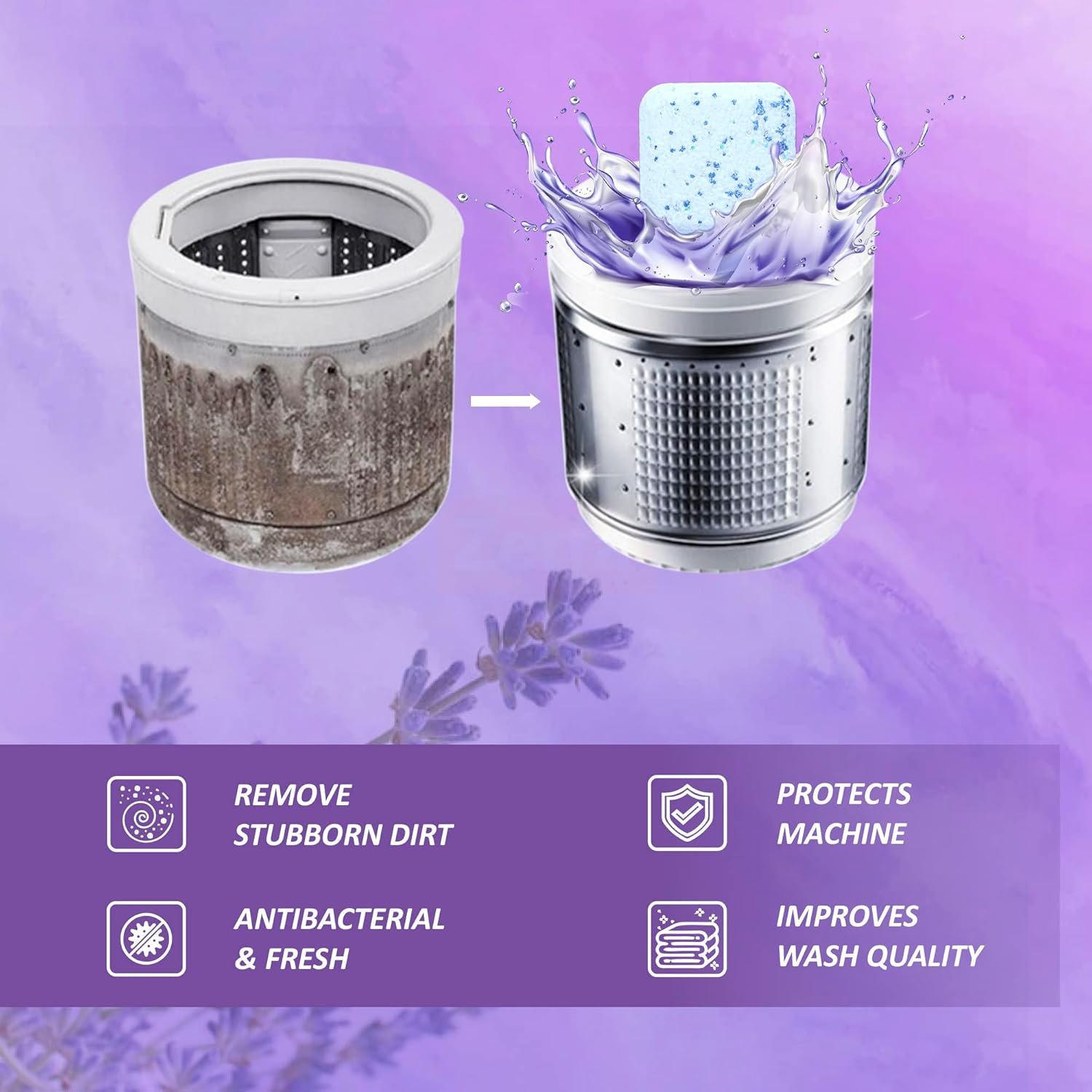 ♻ Effervescent Lavender Fragrance Tablet: Suitable for septic tanks, front-load washing machines, top-load washing machines and conventional washers. It helps keep your machine in a safe, clean and organized working environment.