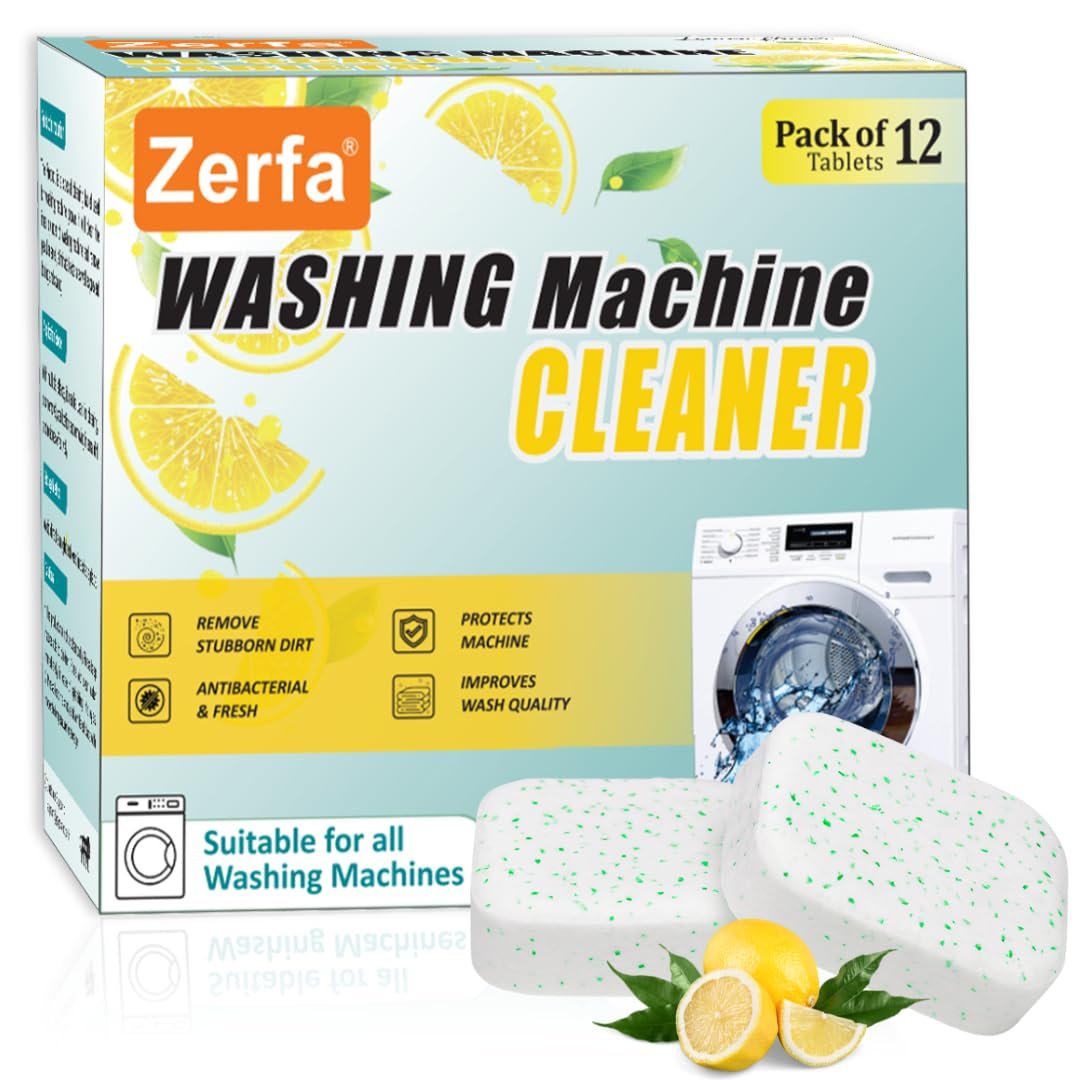 Zerfa (Pack of 12) Lemon-Scented Washing Machine Deep Cleaner Descaler Tablets, Powerful Descaling and Stain-Removing for Front and Top Load Machine