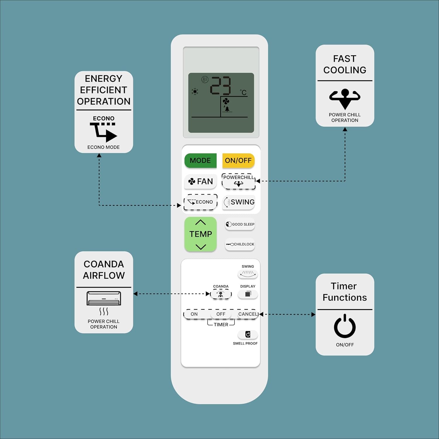 An Air Conditioner (AC) remote control is a compact, handheld device designed for the wireless operation of an air conditioning unit, typically using an infrared (IR) sensor. It features an ergonomic design for easy handling and a user-friendly interface for efficient operation. The remote generally includes several buttons that allow users to customize their cooling or heating experience. The power button turns the AC on or off, while the mode button lets users switch between cooling, heating, fan-only, humidification, and auto modes. Temperature control buttons allow for precise adjustments, such as low, medium, high, and auto, while the swing button adjusts the airflow direction, either fixed or oscillating, for even air distribution. The LCD or LED display screen provides real-time information such as temperature, mode, fan speed, timer settings, and, in some models, even battery levels. Additional high-end features may include a backlit display for better visibility in low-light conditions. Typically powered by AAA batteries, With its combination of intuitive controls, advanced features, and energy-saving options, an AC remote provides convenience and comfort for efficient climate control. Frequently Asked Questions: 1. Batteries Included? Not included. 2. Not Working Properly at first Use? Please do not insert batteries from old remote control. Please make sure you put on brand new batteries while first use. 3. Doesn’t Support? Please make sure your original remote looks back to back like our displayed remote.