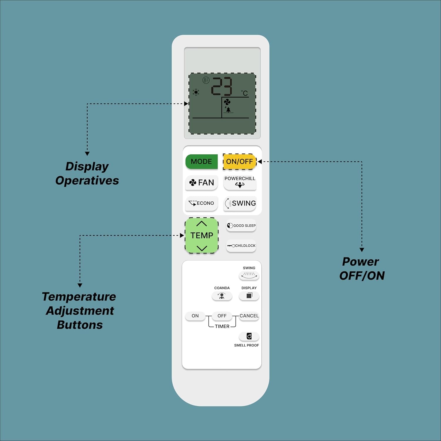 Zieva Compatible For Daikin Ac Remote Replacement For 1, 1.5, 2 Ton Split/Window Air Conditioner – Please Match The Original Remote (Ac 214 A),White