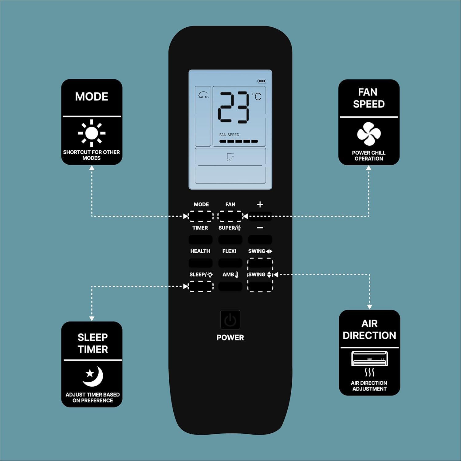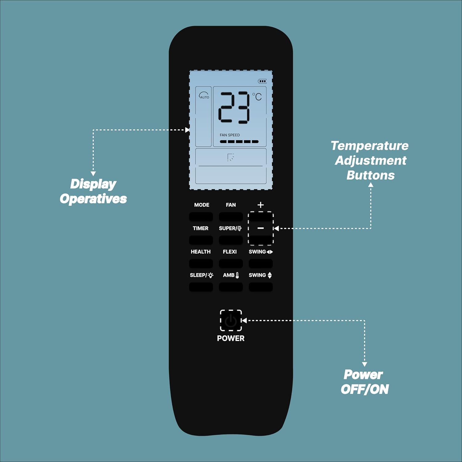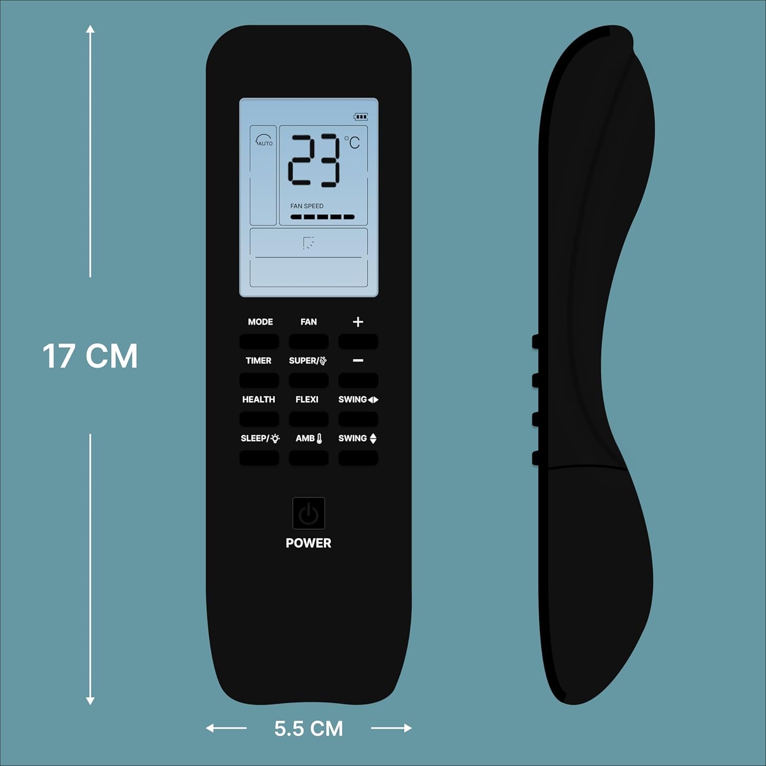 An Air Conditioner (AC) remote control is a compact, handheld device designed for the wireless operation of an air conditioning unit, typically using an infrared (IR) sensor. It features an ergonomic design for easy handling and a user-friendly interface for efficient operation. The remote generally includes several buttons that allow users to customize their cooling or heating experience. The power button turns the AC on or off, while the mode button lets users switch between cooling, heating, fan-only, humidification, and auto modes. Temperature control buttons allow for precise adjustments, such as low, medium, high, and auto, while the swing button adjusts the airflow direction, either fixed or oscillating, for even air distribution. The LCD or LED display screen provides real-time information such as temperature, mode, fan speed, timer settings, and, in some models, even battery levels. Additional high-end features may include a backlit display for better visibility in low-light conditions. Typically powered by AAA batteries, With its combination of intuitive controls, advanced features, and energy-saving options, an AC remote provides convenience and comfort for efficient climate control. Frequently Asked Questions: 1. Batteries Included? Not included. 2. Not Working Properly at first Use? Please do not insert batteries from old remote control. Please make sure you put on brand new batteries while first use. 3. Doesn’t Support? Please make sure your original remote looks back to back like our displayed remote.
