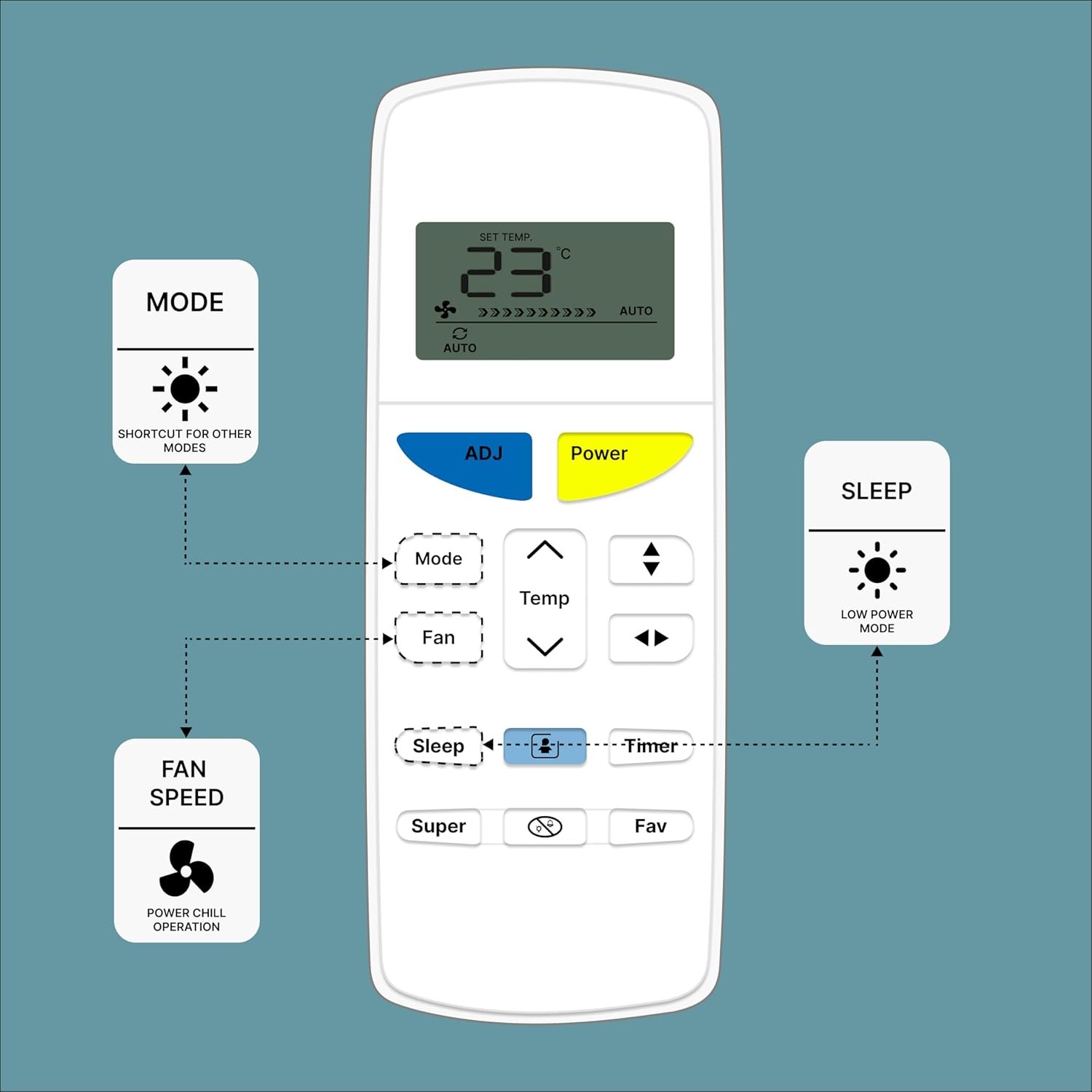 ZIEVA Compatible with Impex AC Remote Replacement for 1, 1.5, 2 ton Split/Window Air Conditioner – Please Match The Original Remote (AC 255)