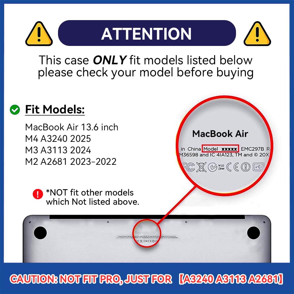 PRECISE COMPATIBILITY: Designed exclusively for the MacBook Air 13.6-inch models A3240, A2681 (M2, 2023), and A3113 (M3, 2024), this case ensures a perfect fit for your device. Tailored cutouts provide effortless access to all ports and functions, so you can enjoy full usability without removing the protective cover.