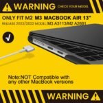 EASY TO ASSEMBLE: The waterproof laptop cover simply snaps on in seconds with its 2-piece design. Features raised rubber feet and precision vents seamlessly with your MacBook Airs design, optimizing airflow to prevent overheating during prolonged work or video calls, enhancing performance and longevity.