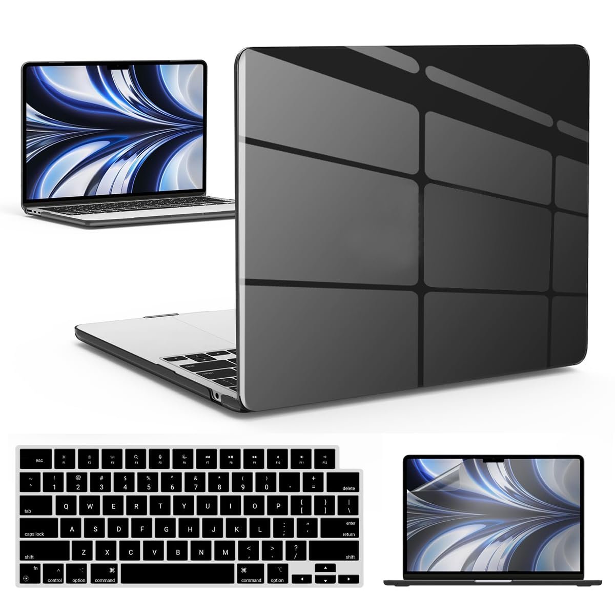 ZORBES® Laptop Cover Case for 13.6 Inch New MacBook Air M4 A3240 M3 A3113 M2 A2681 13 Inch Hard Shell Case for Mac Book 2025 2024 2022 with Keyboard Cover Screen Protector (Crystal Black)