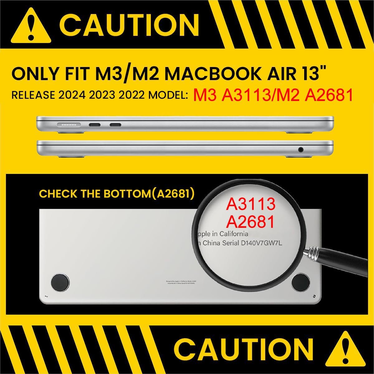 HOW TO VERIFY MACBOOK MODEL: Before purchasing, locate the model number “AXXXX” engraved on your laptop’s bottom case. Ensure your MacBook Air M4 M3 M2 exactly matches one of the listed compatible models: A3240 / A3113 / A2681.