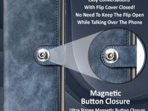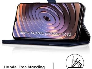 Fashionury Flip Back Cover Case for Redmi A4 5G / Poco C75 5G / Redmi 14C 5G / Poco M7 5G | Genuine Leather Finish | Designer Button | Inbuilt Pockets & Stand | Flip Back Case Cover (Blue)