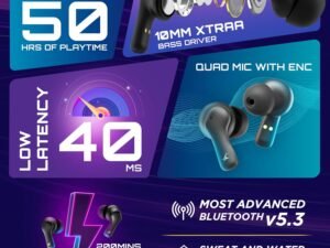 Fast Charging Neckband Bluetooth Earphones – Compatible with OnePlus Bullets Z2, 30-Hour Battery, AI Noise Cancellation, IP55 Sweatproof-Black|