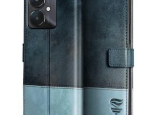 FLIPPED Vegan Leather Flip Case Back Cover for Vivo T4X 5G | IQOO Z10X 5G (Flexible, Shock Proof | Hand Stitched Leather Finish | Card Pockets Wallet & Stand | Blue with Brown)