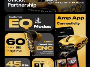 GOBOULT x Mustang Dash Truly Wireless in Ear Earbuds with 100H Playtime, App Support, Dual Device Pairing, 4 Clear Calling ENC Mics, 45ms Low Latency, Made in India, IPX5 Ear Buds TWS Bluetooth 5.4