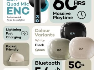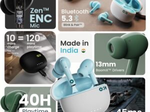 GOBOULT W60 True Wireless in Ear Earbuds 60H Playtime, ZEN Quad Mic ENC, 50ms Xtreme Low Latency, Made in India, Type-C Fast Charging, 13mm Driver, IPX5 Combat Gaming mode,TWS Ear Buds Wireless(Green)