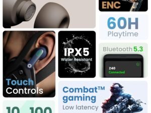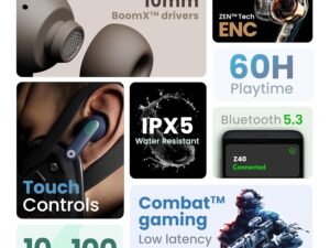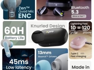 GOBOULT Z20 Pro Made in India Ear Buds Wireless with 60H Playtime, 4 Mics for Clear Calling, 45ms Low Latency Gaming, IPX5, 13mm Bass Driver Earbuds Buds TWS Bluetooth Wireless Earphones (Jet Black)