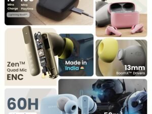 GOBOULT Z60 MADE IN INDIA Ear Buds Wireless with 60H Playtime, 4 ENC Mics for Clear Calling, 50ms Low Latency Gaming, IPX5, 13mm Bass Driver Earbuds Buds TWS Bluetooth wireless earphones (Raven Black)