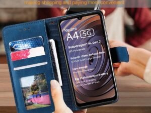 GoldKart Flip Back Cover Case for Redmi A4 5G | Poco C75 5G | Redmi 14C 5G | Dual-Color Leather Finish | Inbuilt Stand & Pockets | (Faux Leather, Blue)