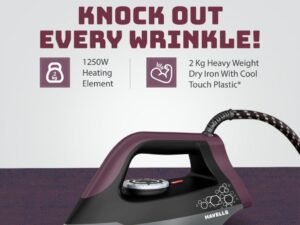 Havells ABS Tinyo 1250 Watt Steam Iron Press With Powerfull Steam Spay | Horizontal Steaming | Self Clean | 200Ml Tank Capacity | 2 Years Warranty (Pink), 1250 Watts